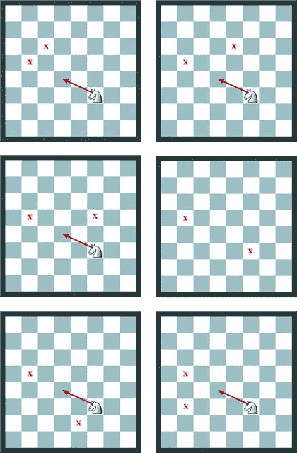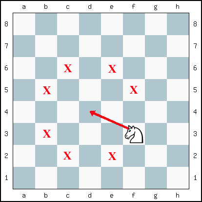 In questo diagramma, col Cavallo in d4, potete vedere che le combinazioni (forchette) di due case