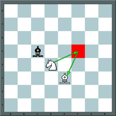 Il Re attacca due pezzi non protetti, vicini. Nessuno può spostarsi e proteggere l'altro contemporaneamente.