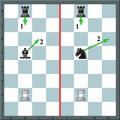 causare una minaccia peggiore, catturando con uno dei vostri due pezzi un pezzo avversario, ancora meglio magari dando